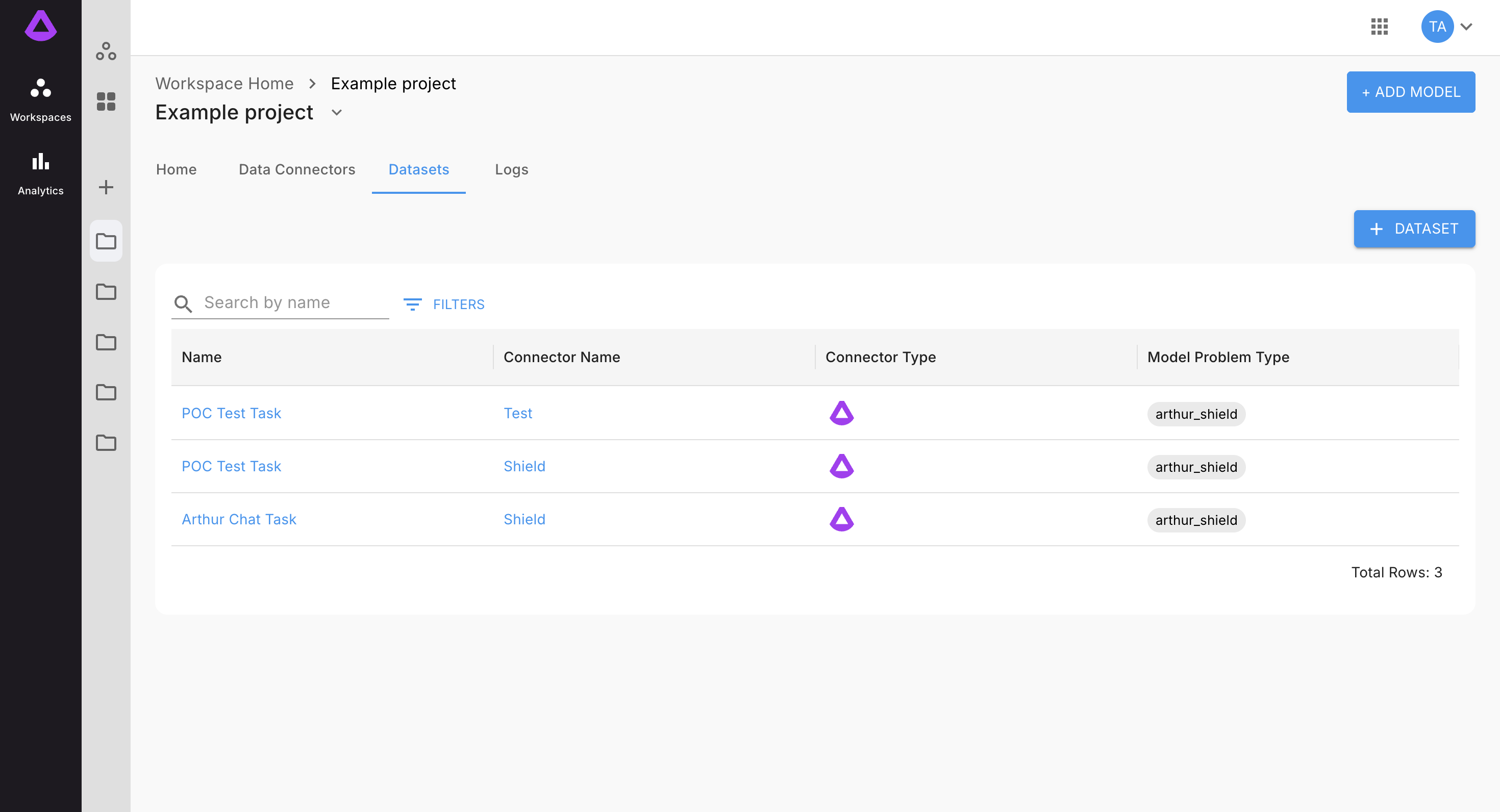 Note: Adding new dataset and managing existing ones is possible from Dataset tab: