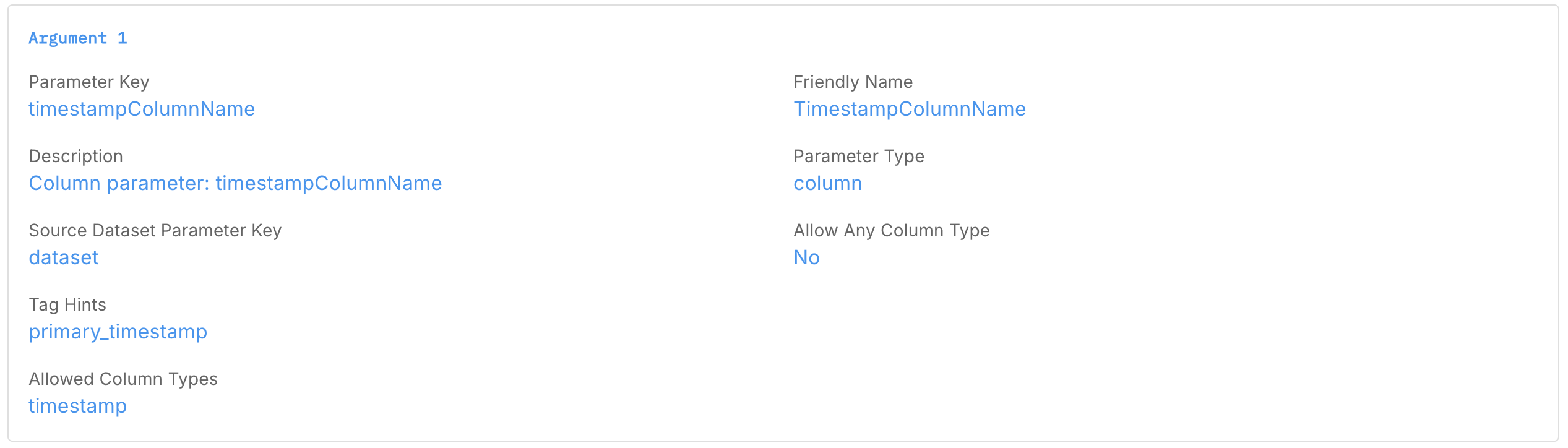 This tells Arthur which timestamp column to use for the time_bucket function.