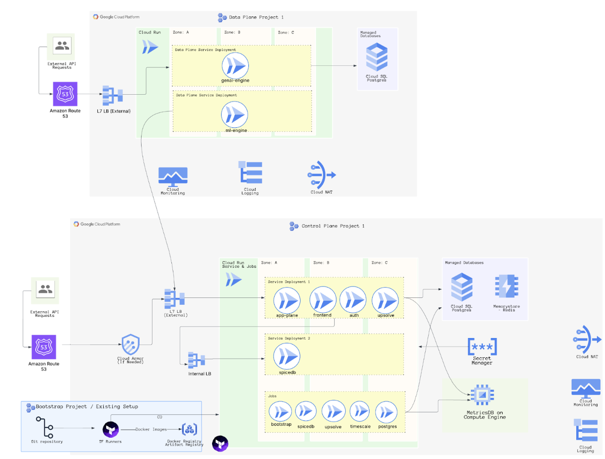 - Cloud SQL (separate infrastructure for Control and any Data Planes)