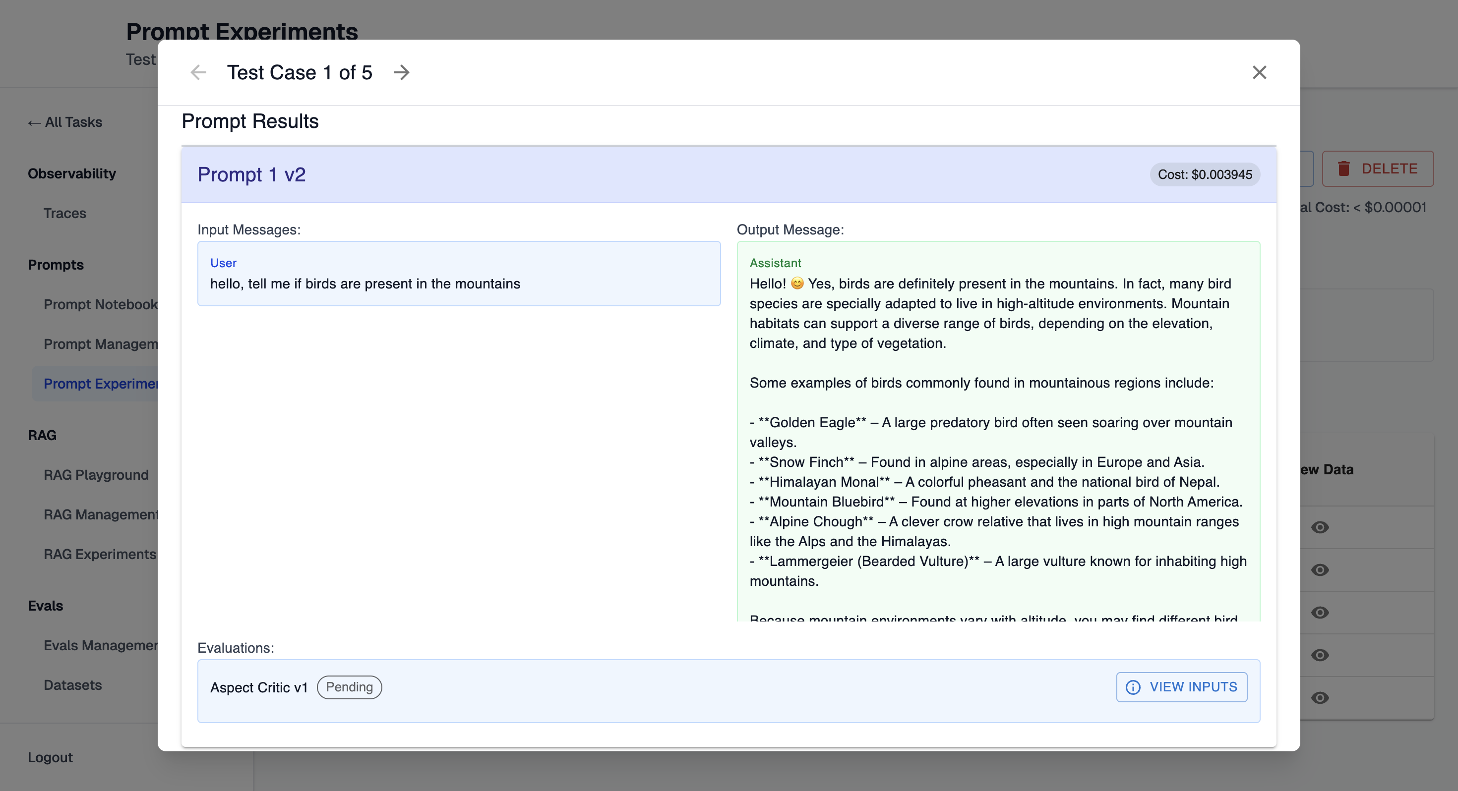 - Compare Systematically: Test multiple prompt versions in the same experiment for fair comparison