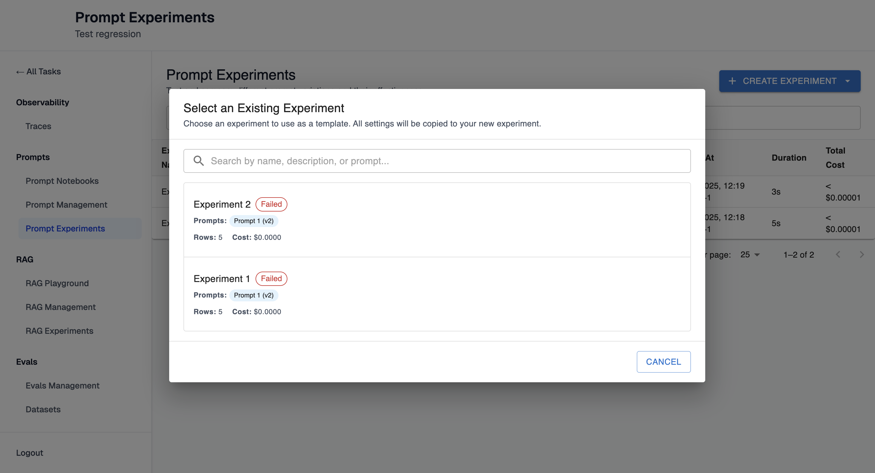 Workflow 2: Load Existing Experiment Configuration with New Prompts