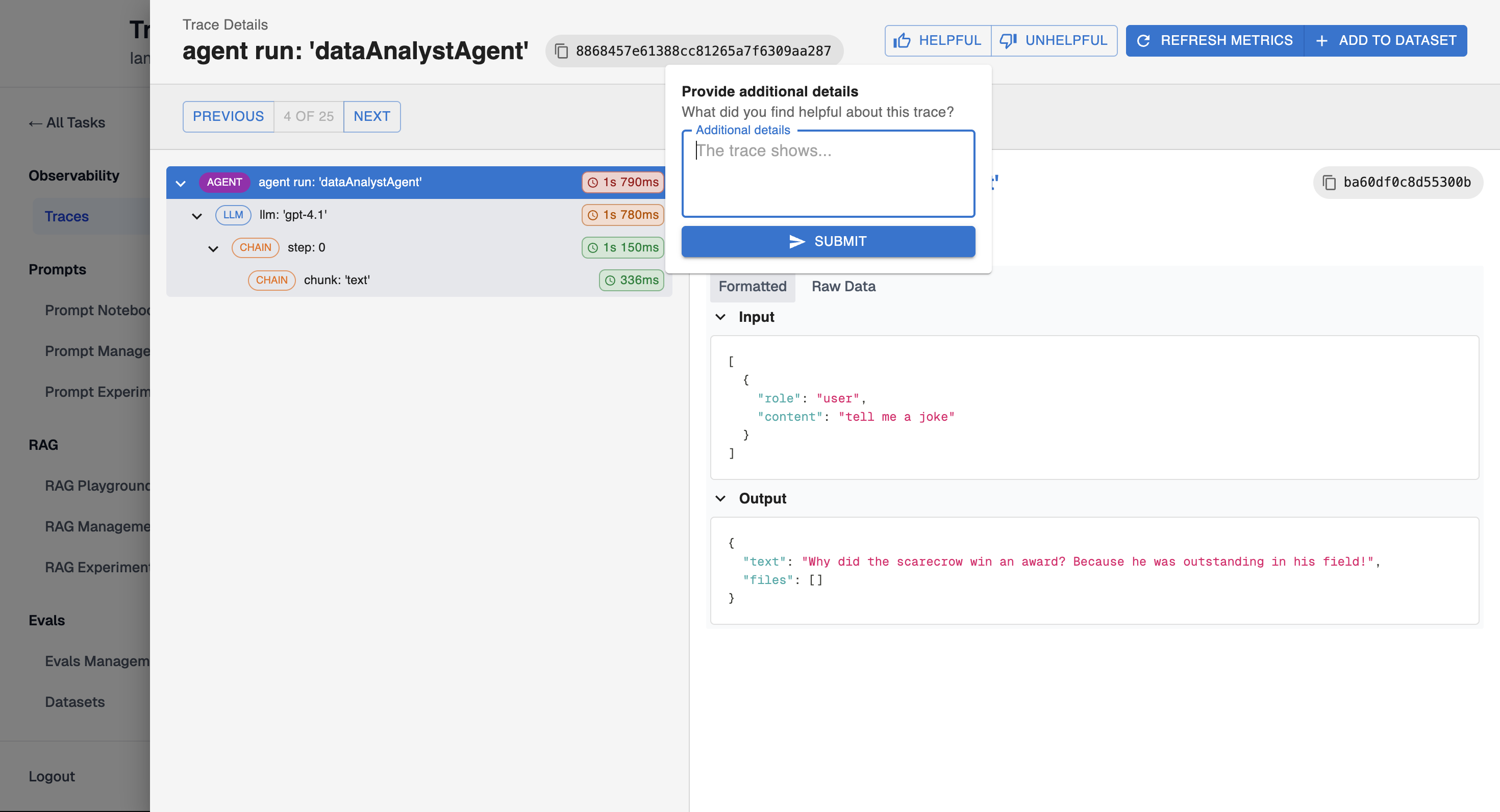 - LLM calls and responses