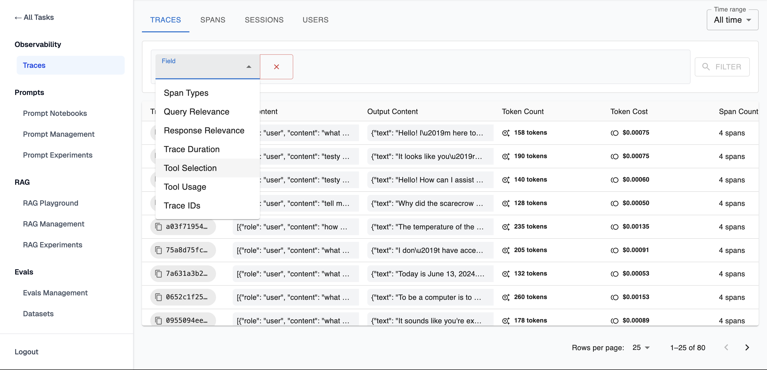 It's possible to filter traces by: