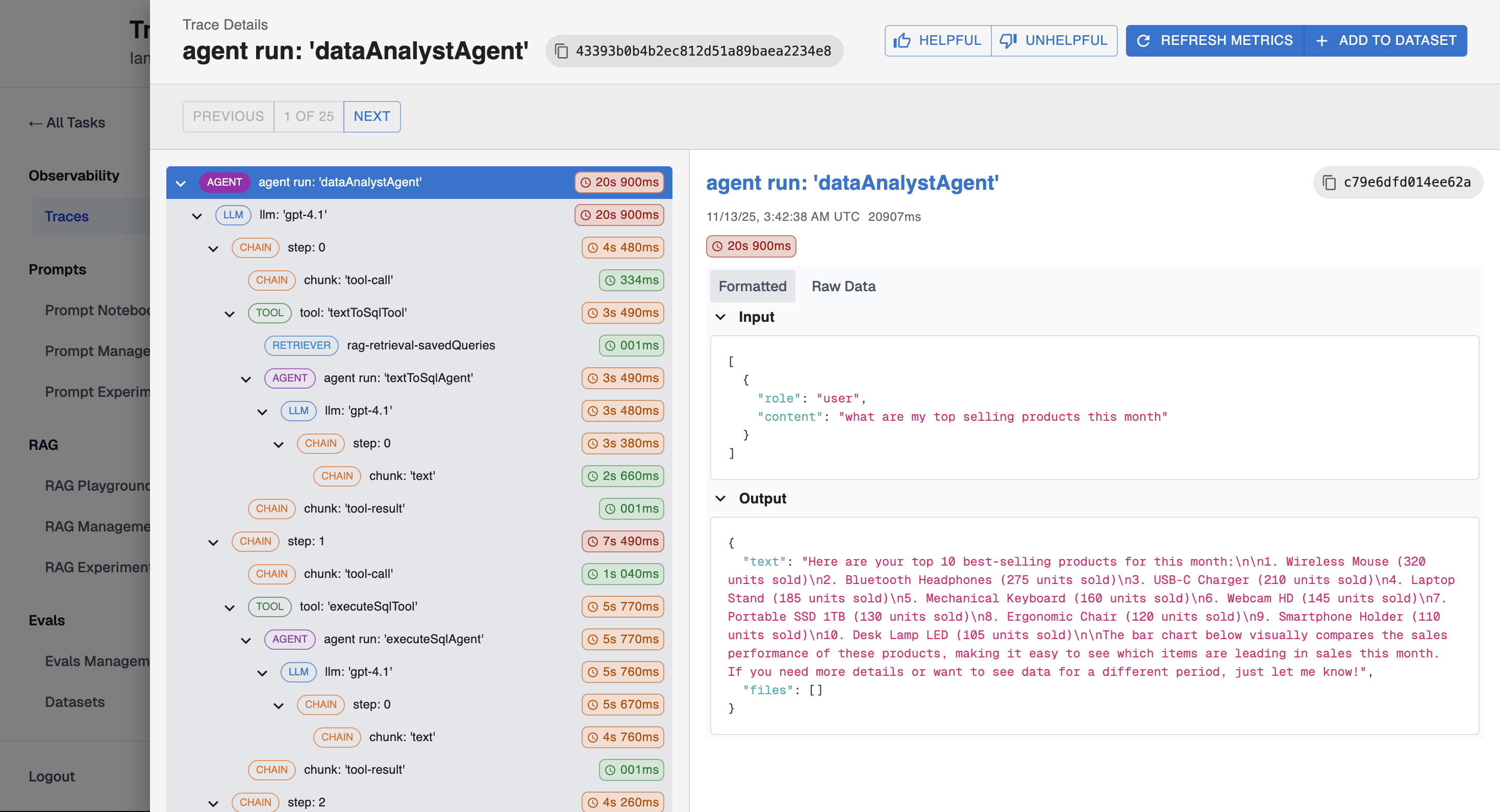 - Agent execution steps